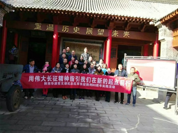 2016年11月5日,華源黨支部組織黨員及入黨積極分子開展“用偉大長征精神指引我們在新的起點前行—紀(jì)念紅軍長征勝利80周年主題實踐活動”,前往藍(lán)田葛牌紀(jì)念館參觀,對習(xí)主席在紀(jì)念紅軍長征80周年大會上發(fā)表的重要講話進行學(xué)習(xí),并組織黨員在紀(jì)念館前宣誓。(郭娜)